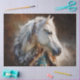 An elegant ivory stallion with feather accents, fur trim, and a teal Aztec saddle blanket—crafted for statement furniture flips. The neutral cream coat and deep teal-copper tones bring ranch-luxe character that fits rustic farmhouse, lodge, and boho interiors. Use on drawer fronts, cabinet panels, hutches, and armoires. The large portrait scale and painterly texture lay smoothly for a refined finish, turning dressers, sideboards, and nightstands into showcase pieces.