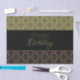 O texto de aniversário feliz pode ser alterado para qualquer evento especial neste moderno papel de tecidos desenhado, enquanto o fundo preto e verde-oliva pode ser mudado para qualquer cor.