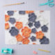 Primavera, flores tecidos feitas à mão, cor de laranja azul, branco. Você deve saber que consegue uma foto!
