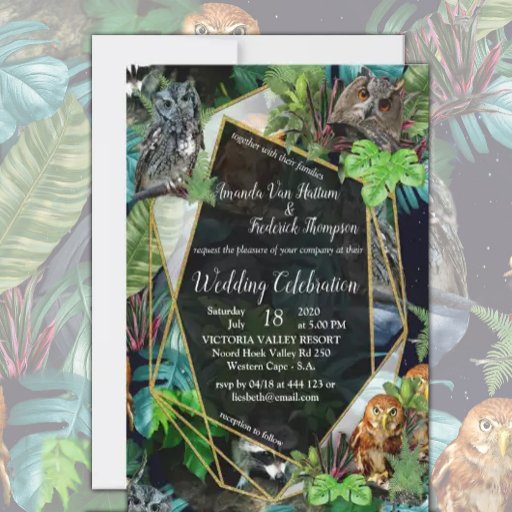 Que animais noturnos você consegue ver através do escuro? Corujas, gambás e morcegos fluttering são apenas algumas das muitas criaturas noturnas dentro desta design para personalizar para o tema do papel de carta de casamento. Esta coleção vem com um livro de hóspedes correspondente para convidados de casamento assinarem