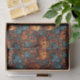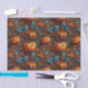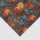 Este papel de tecido festivo do Halloween apresenta um padrão ininterrupto e muito detalhado de abóboras de laranja esculpidas interligadas com florescimento botânico laranja e azul. O ousado contraste entre os tons quentes de abóbora e as folhas legal de chá adiciona um toque brilhante e elegante, fazer-o perfeito para sacos de presentes, embrulho de presentes delicados, ou adição de um sotaque sazonal aos favores do Halloween e às comemorações do outono.