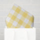 Um teste padrão clássico da verificação do búfalo em amarelo e no branco faz um lenço de papel agradável para envolver um presente especial para toda a ocasião.