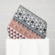 Teste padrão tribal asteca abstrato geométrico moderno do impressão de Andes em máscaras listradas do rosa marrom, salmon, das cinzas de carvão vegetal, e da luz - a cinza é um teste padrão um--um-amável, na moda que caracteriza uma variedade de formas geométricas que incluem triângulos, ziguezagues, padrões de flor e outro motivos tribais astecas do abstrato. Personalize-a adicionando fotos e/ou texto para criar seu próprio design original!