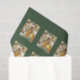 Estas folhas de papel são verdes escuras com filas de uma imagem com textura falsa bordada de uma indiana americana na floresta segurando um arco e flecha numa vila.
