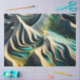 "Topographic Currents" is a high-definition 3D digital landscape featuring flowing hills and valleys rendered in a sophisticated palette of dark blue-green, light yellow, beige, white, and black. The smooth, river-like lines and undulating terrain create an abstract yet realistic topographic scene, ideal for use as a striking background or modern design element. Perfect for adding depth and elegance to digital spaces.