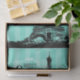 Este papel de tecido na moda apresenta um gráfico preto da Torre Eiffel e um nome para você personalizar. O plano de fundo é uma faixa verde de cor marinha.