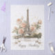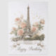 Uma design elegante e romântica com cartão de saudação, com uma bela ilustração em estilo aquarela da Torre Eiffel. O icônico marco parisiense é rodeado por rosas de cor-de-rosa suave, pastel e creme, acentuados com delicadas manchas de ouro. Personalize com seu próprio texto o banner de fita na tela inferior.