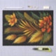 Esta ilustração apresenta flores e verduras tropicais laranja, capturadas com uma nitidez espantosa com designs intrincados e detalhados. As flores são lindamente desenhadas com pétalas delicadas e padrões intrincados, enquanto as sementes são retratadas com folhas e caules finamente detalhados. O fundo preto fornece um belo contraste, permitindo que as cores vibrantes das flores e das sementes se destacem ainda mais. Criada com tecnologia de ponta, é uma representação bela e artística da natureza.