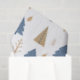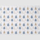 Holiday paper with blue and gold trees and gold leaves.