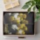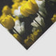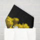 Tulipas amarelas e brancas iluminadas contra fundo escuro. A tulipa branca significa pureza, tulipa amarela significa amor, sorriso e felicidade.