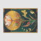 Esta design de papel de tecido inspirado nesta arte apresenta um belo ouro de pêssego, tulipa fina e friável contra um ouro como orbe - como uma lua de ascensão ou sol - tudo contra um fundo verde de floresta profundo. Borboletas e mariposas ouros voam e flertam na base da tulipa, girando ao redor da design circular, inspirada na Ásia. Uma bela joia vermelha rasteja lentamente o caule da flor torrencial.