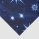 Night sky filled with glowing stars and snowflakes in various sizes and styles. Set against a deep blue backdrop, the bright white and icy blue elements create a striking contrast. Wispy, wave-like light trails weave through the composition, adding motion and depth. The overall effect is magical and wintery—evoking a sense of wonder, serenity, and seasonal charm.