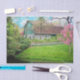 Papel De Seda Um celeiro tranquilo entre flores e um riacho