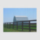 Um Pequeno Barn Branco Instantâneo com Telhado Prateado com cerca marrom asticada no papel tecidular