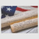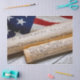 Copies of the Declaration of Independence and US Constitution in rolled up scrolls with a vintage American flag