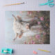 Esta pintura captura uma majestosa vaca branca Highland em um campo de flores vibrantes, criando uma cena serena e pastoral. O ligeiro contraste entre o casaco fluffy da vaca e as flores coloridas evoca uma sensação de tranquilidade e de encanto rústico.
