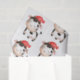 Papel tecidular com uma imagem adorável de uma vaca encarnada a preto e branco vestindo um chapéu vermelho.