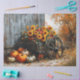 Uma pintura russa do outono ainda é uma pintura com um vagão de madeira cheio de girassóis brilhantes.
