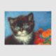 Tecido com um lindo gato de smoking Van Gogh! Esta pequena gatinho se posiciona ao lado de uma cesta de flores laranja sobre uma mesa vermelha. Um presente de excelente para amantes de gatos e colecionadores de arte holandeses!