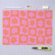 Isto é giro entupido flores retrorreflectoras em quadrados de padrão rosa e laranja controlados