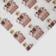 Papel de etiqueta de viagem antigo com flores rosa e burgundy, malas elegantes e um lindo globo floral.