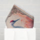 Uma bela grua é enquadrada por designs adoráveis e um motim de flores coloridas, tudo em pinks e blues complementares