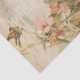 Use este papel de tecido no estilo de vintage com flores cor-de-rosa, pássaros e texto de script sobre fundo angustiado para embrulhar presentes ou projetos de artesanato.