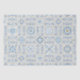 A seamless ornamental tile pattern featuring intricate blue floral motifs, geometric frames, and decorative scrollwork arranged in a classic European-inspired layout on a soft neutral background.