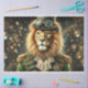Um leão autoritário vestindo um chapéu e óculos. O fundo da meia-noite proporciona um contraste dramático para os elementos de latão e cobre em todo o design. Ideal para artesanato sofisticado, decoração ao estilo vintage e projetos profissionais de arte em papel. Explore designs de fantasia mais deliciosos em minhas outras coleções de lenços de papel de dissociação!