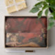 Este design apresenta uma pintura do artista inglês Dante Gabriel Rossetti (1828-1882), que foi o fundador do movimento artístico da Irmandade Pré-Raphaelita. A pintura se inspira nos escritos do poeta italiano Giovanni Boccaccio, em especial na sua representação de Fiammetta, uma musa e amada figura em suas obras. Rossetti apresenta Fiammetta como uma mulher lindíssima, representada aqui num retrato comprido. Ela é mostrada em uma pose de três quartos, sua cabeça gentilmente inclinada para o lado, com seu olhar desviado do espectador. Essa pose, combinada com sua expressão serena, imbui a pintura com um senso de gentil melancolia e introspecção. A face de Fiammetta é enquadrada por uma cascata de cabelos ricos de auburn que desagua sobre os ombros, um detalhe característico na representação feminina de Rossetti. Fiammetta está vestida com um luxuoso e profundo vestido vermelho que se destaca vividamente contra o fundo. A rica cor de seu vestido simboliza paixão, amor e uma sensualidade intensa, alinhada aos temas da pintura. Fiammetta segura os ramos de uma árvore em suas mãos, e esses ramos estão florescendo com lindas flores cor-de-rosa. Há também um pássaro vermelho voando acima da cabeça de Fiammetta. A obra de arte original foi pintada por Dante Gabriel Rossetti em 1878.