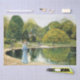 Este design apresenta uma obra de arte original do pintor impressionista americano Childe Hassam (1859-1935). Mostra o Central Park na Nova Iorque durante os últimos anos do século 19. Há senhoras elegantes com crianças andando por um lago no parque. Há um pequeno cachorro branco no primeiro plano, acompanhando uma senhora de vestido azul, que está segurando a mão de uma garotinha de vestido branco. Várias árvores verdes e verdes podem ser vistas no fundo além do lago. O céu está limpo e parece ser um belo dia de verão. A obra de arte original foi pintada por Childe Hassam em 1892.
