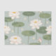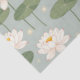 Drift into serene tranquility with this elegant lotus flower repeating pattern! Delicate white lotus blooms with soft pink edges and golden centers float gracefully among large round green lily pads and slender stems against a soothing pale sage mint background. Gentle glowing highlights and subtle light effects create a peaceful atmosphere.