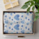 This elegant tissue paper design features a variety of hand-painted watercolor hearts in shades of sapphire, azure, and soft sky blue. Interspersed with shimmering gold glitter dashes and dots, the pattern creates a whimsical yet sophisticated aesthetic. The textured paper background adds a tactile, high-quality feel, making it perfect for Valentine’s Day, anniversaries, baby showers, or luxury gift wrapping.