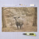 Sepia tona cena de um touro longo na floresta ocidental. Papel mais criativo e mais criativo de empacotamento de tecidos na coleção abaixo, por zazzle.com/windydesign