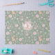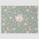 Whimsical Bunny Teapot Spring Floral Pattern Tissue Paper. Whimsical design featuring an adorable bunny nestled inside a delicate pink teapot, surrounded by watercolor flowers and lush green leaves. The soft sage green background enhances the gentle beauty of this pattern. Ideal for Easter or baby showers.