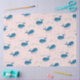 Um padrão baleeiro de flores e baleias decora essas folhas personalizadas de papel tecidular. Excelente para aniversários temáticos náuticos ou chás de fraldas.