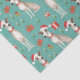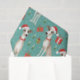Este lenço é um prazer festivo! Apresenta um minúsculo fundo verde adornado com um charmoso padrão de natal de chicotes vestindo chapéus de Papai Noel e colarinhos vermelhos, cercado por árvores de Natal e caixas de presentes. O design brincalhão captura o espírito de feriado e adiciona um toque de choradeira ao seu embrulho de presente