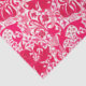 Papel tecidular de um impressão floral de lírios estilizados e irlandeses, de cor digital, em tons de luz a rosa profundo, e vinho profundo tinto sobre fundo branco