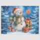 Whimsical Winter Blue Christmas Snowman and Christmas Presents Tissue Paper for decoupage, furniture decoupage & gift wrapping.