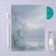 Send warm wishes with this snowy tissue paper theme, perfect for all your holiday presents and winter gifts. The serene design features a picturesque snowy landscape, showcasing a majestic frosted tree standing beside a tranquil, perhaps frozen, lake or river. Softly falling snow and sparkling flakes create an ethereal winter wonderland atmosphere, evoking the peaceful beauty of a quiet winter's day. Also a winter snow blue decoupage paper idea.