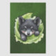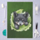 Wolf cub in the green: A view full of magic and warmth. A charming digital illustration features a wolf pup nestled within vibrant green lettuce leaves. The pup has black and grey fur, with a white muzzle and paws, and large, expressive green eyes. Rosy cheeks add to its endearing appearance. The background is a soft, gradient green, creating a gentle and inviting atmosphere.