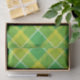 Xadrez em tons amarelos e verdes padrão geométrico. Modelo de papel tissue personalizável
