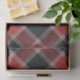 Acessórios pretos e vermelhos do Natal do guingão da flanela da xadrez da casa. Acessórios de forma vermelhos e cinzentos tradicionais da xadrez.