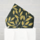 Seamless pattern of stylized yellow and cream leafy branches against a dark green, speckled background.