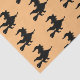 Esta bruxa assustadora sobre uma vassoura está representada neste papel de tecido festivo para seus presentes de Halloween.