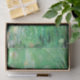 Este artigo dos Tecidos com uma arte de padrão abstrato feita com cores brancas, amarelas, esbranquiçadas e acrílicas verdes, é perfeito para trazer um toque moderno aos seus presentes ou projetos de dissociação.