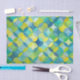 Papel Tecido com um impressão de uma das pinturas de cor d'água modernas abstrato matemáticas de repetição da forma de Pip Gerard. O Pip usou intervalos de cores complementares dentro do blues e tons/matizes verdes.