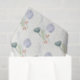 Um impressão de luz desenhado com pequenos pods de lotus azuis de acendimento, hidrangea azul em pó, bagas de coral e uma flor como uma folha. Esta impressão está sobre uma imagem de fundo de falso pergaminho para vestimenta.