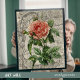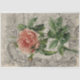 Um rosa brilhante de escarlate ouro com lindas folhas verdes esculpidas, escuras, sobre um fundo antigo do livro barroco. Esses papéis já foram decorados com ornamentos decorativos no estilo barroco. Desligar papel de tecidos. Este documento será perfeito para seus projetos de artesanato