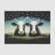 Vacas Primitivas, Pretas e Brancas, sob o Papel de Tecido de Decoupage das Estrelas, Pintura Primitiva com duas Vacas À Noite, no estilo de arte primitiva, retrato ilusório e fazenda.